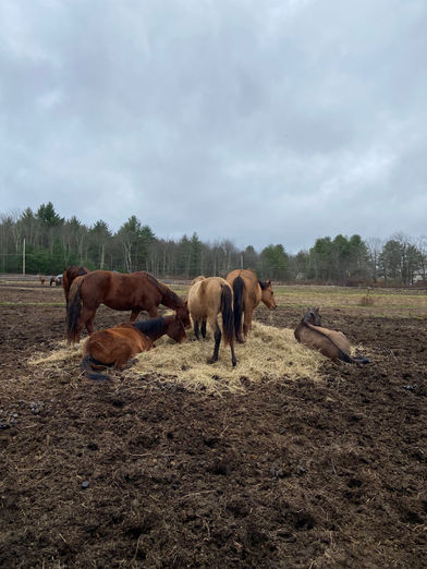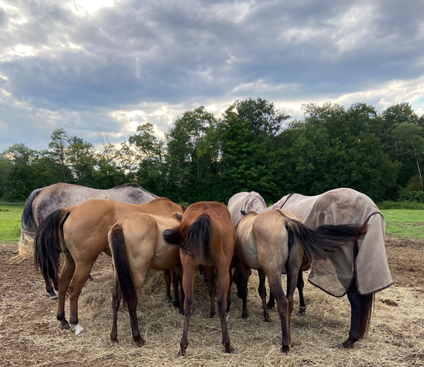 At Winnieś Meadows we strongly believe horses should be living in the most natural state possible. All of our horses live out 24/7, with constant forage offered, in small social groups. Although we do offer stall boarding, the majority of our horses and clients use our rough board option. Horses are brought in when extreme weather conditions occur.